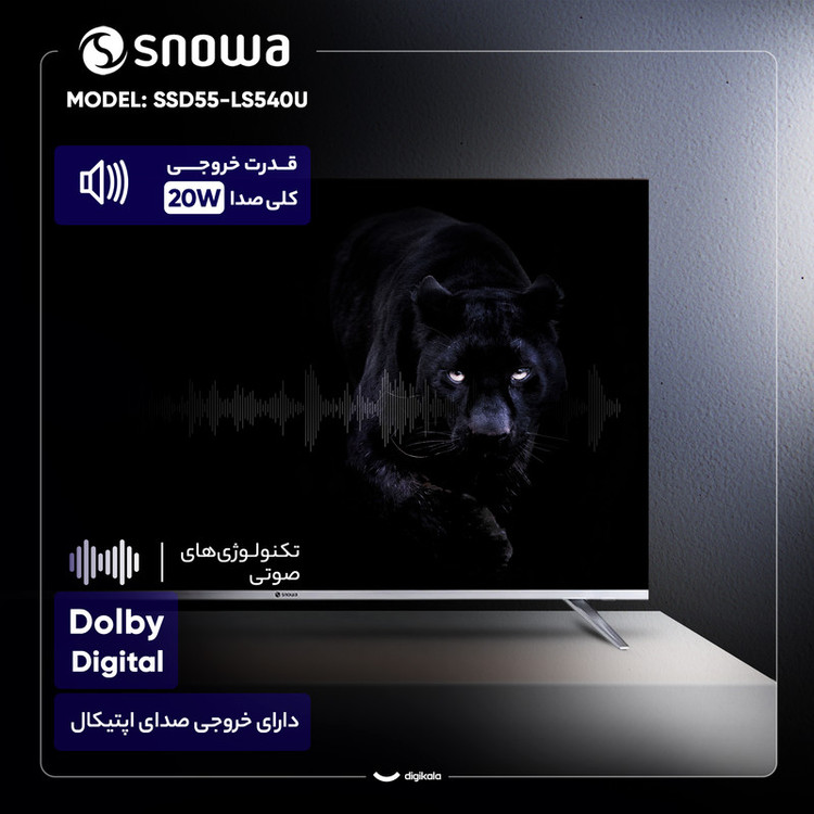 تلویزیون هوشمند ۵۵ اینچی اسنوا مدل SSD-55LS540U، گزینهای جذاب از یک برند ایرانی برای خانوادههایی است که به دنبال تجربهی تماشای 4K با امکانات هوشمند هستند. این تلویزیون با طراحی تخت و پایههای دوشاخه، به خوبی در فضای نشیمن جای میگیرد. نمایشگر LED این دستگاه با پنل IPS و رزولوشن ۳۸۴۰ در ۲۱۶۰ پیکسل، تصاویری واضح با زاویه دید گسترده ارائه میدهد. پشتیبانی از فرمت HDR مانند HLG هم به نمایش بهتر رنگها و کنتراست کمک میکند. نرخ بهروزرسانی ۶۰ هرتزی برای تماشای روان فیلم و برنامههای تلویزیونی مناسب است و قابلیت ارتقای کیفیت تصویر هم کیفیت محتواهای قدیمیتر را بهبود میبخشد. سیستم صوتی ۲۰ واتی آن با پشتیبانی از Dolby Digital، صدایی رسا و شفاف را فراهم میکند. این تلویزیون با سیستمعامل اندروید، پردازندهی چهار هستهای و ۸ گیگابایت حافظه داخلی، دسترسی به دنیایی از برنامهها، بازیها و قابلیت Screen Mirroring را ممکن میسازد. سه درگاه HDMI، دو درگاه USB، پورت LAN، وایفای و بلوتوث، امکان اتصال به انواع دستگاهها را فراهم میکنند. گیرنده دیجیتال داخلی DVB-T2 هم شما را از خرید دستگاه جداگانه بینیاز میکند. اسنوا SSD-55LS540U با ارائهی ترکیبی از تصویر 4K، صدای با کیفیت و امکانات هوشمند، انتخابی هوشمندانه برای لذت بردن از فیلم و سرگرمیهای روزمره در خانه است.