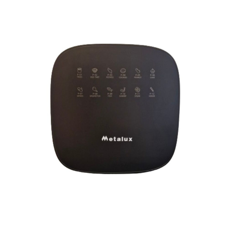 سرخ کن بدون روغن متالوکس با ظاهری زیبا و دارای 12 برنامه پخت و پز: سیب زمینی، کیک، استیک، سبزیجات، ماهی، پیتزا، میگو کبابی، ران مرغ، کوکی ها، کباب، آجیل خشک کن و یک برنامه که بصورت دل بخواهی با هر درجه دما و زمانی که دوست دارید. میتوانید بعنوان برنامه دوازدهم برایش انتخاب کنید. دارای نشان استاندارد ایران و اروپا و 24 ماه گارانتی شرکتی می باشد. ظرفیت 6 لیتر و ظرفی از جنس تفلون درجه یک، که کاملا نچسب و آسان نظافت می شود. مجهز به صفحه نمایشگر دیجیتالی و لمسی. گردش هوای 360 درجه که پختی یک نواخت همراه با حفظ ظاهری و طعم مواد غذایی پخته شده. سرخ کن های متالوکس سبب کاهش 90% درصدی مصرف روغن شده، که این امر باعث شده که در سلامتی و رژیم غذایی شما تاثیر زیادی داشته باشد. توان مصرفی 1400 وات دارد که این توان مصرفی باعث شده، نسبت به رقبای خود، بسیار کم مصرف بوده و با تکنولوژی جدید و چرخش هوای عالی با مصرف برقی پایین، دارای زمان پختی سریعتر می باشد.